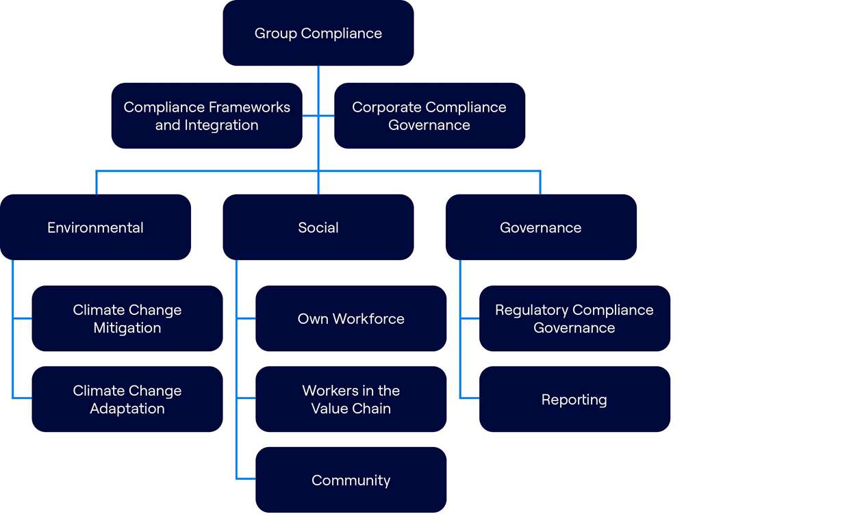 Based on the DMA analysis and as part of the Cicor compliance initiatives, double materiality has been integrated into the Cicor compliance structure, as detailed below: